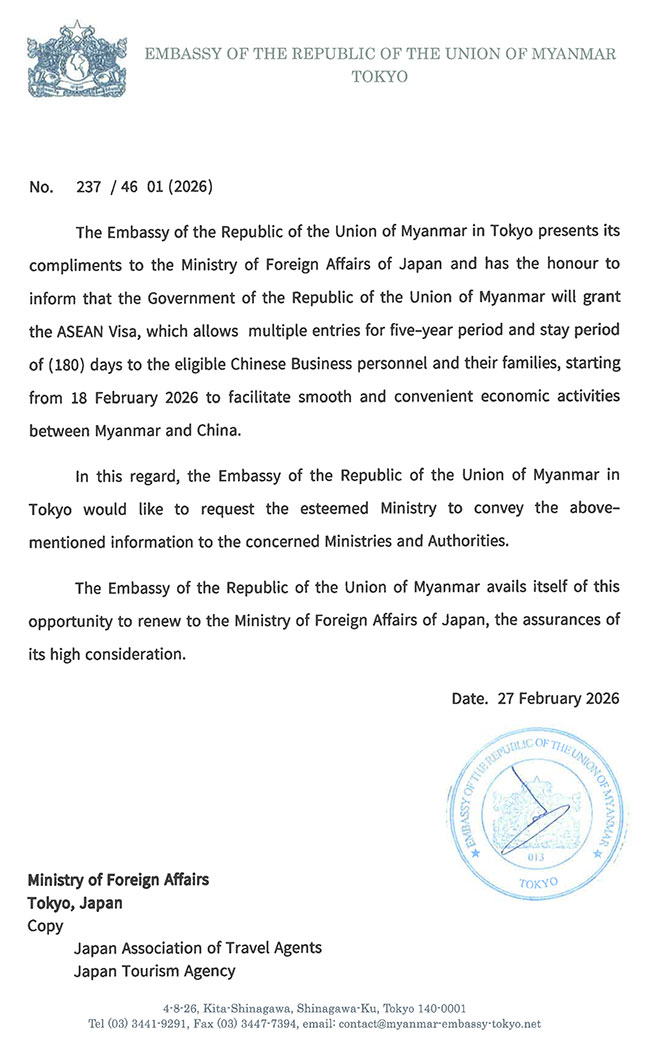 Myanmar Embassy Websites Bandar Seri Begawan Beijing Brussels Belgrade Berlin Brasilia Cairo Canberra Dhaka Hanoi Kathmandu Islamabad London Kuala Lumpur Kuwait New Delhi Manila Moscow Oslo Ottawa Riyadh Phnom Penh Prague Pretoria Singapore Rome Seoul Tel Aviv Tokyo Vienna Vientiane Washington Geneva Chiang Mai Jakarta Hong Kong Kolkata Kunming Los Angeles Nanning Online Appointment (ရက်ချိန်းရယူခြင်း) Home About Myanmar Trade Information Services Gallery Contact Us မြန်မာသံရုံး Online Appointment System ၌ ကြိုတင်ရက်ချိန်းရယူခြင်းနှင့် ကောင်စစ်ဆိုင်ရာဝန်ဆောင်မှုများနှင့်ပတ်သက်၍ အသိပေးကြေညာခြင်း Information about Asean visa Myanmar Ministry Websites Ministry of Defence Ministry of Home Affairs Ministry of Foreign Affairs Ministry of Union Government Office(1) Ministry of Union Government Office(2) Ministry of Border Affairs Ministry of Planning and Finance Ministry of Investment and Foreign Economic Relations Ministry of Legal Affairs Ministry of Information Ministry of Religious Affairs and Culture Ministry of Agriculture, Livestock and Irrigation Ministry of Cooperatives and Rural Development Ministry of Transport and Communication Ministry of National Resources and Environmental Conservation Ministry of Electricity and Energy Ministry of Industry Ministry of Immigration and Population Ministry of Labour Ministry of Commerce Ministry of Education Ministry of Science and Technology Ministry of Health Ministry of Sports and Youth Affairs Ministry of Construction Ministry of Social Welfare, Relief and Resettlement Ministry of Hotels and Tourism Ministry of Ethnic Affairs Useful Information Government of Myanmar ဂျပန်နိုင်ငံရှိ ထင်ရှားသော ဘာသာရေး အဆောက်အဦများ Findings Embassy's newsletter FAQs